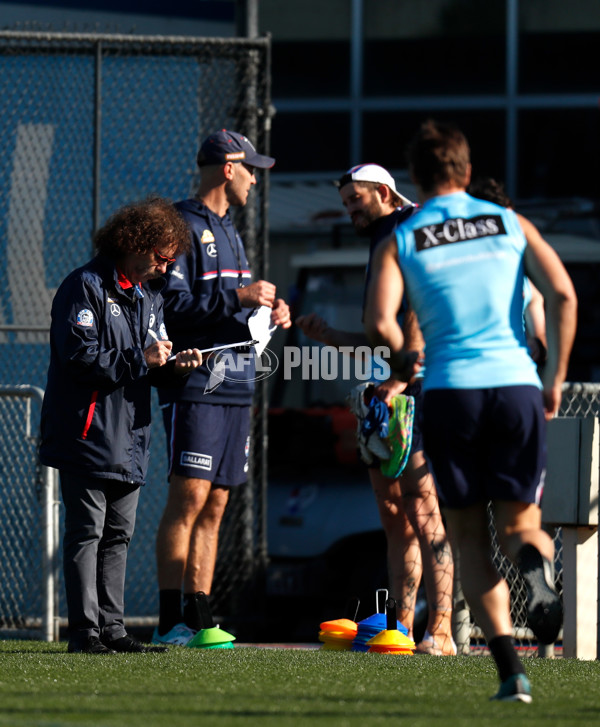 MELBOURNE, AUSTRALIA - MAY 18: Gary Zimmerman, Club Doctor of the Bulldogs takes notes during the Western Bulldogs training session at Whitten Oval on May 18, 2020 in Melbourne, Australia. (Photo by Michael Willson/AFL Photos)