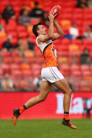 SYDNEY, AUSTRALIA - MAY 22: Zach Sproule of the Giants takes a mark during the round 10 AFL match between the Greater Western Sydney Giants and the West Coast Eagles at GIANTS Stadium on May 22, 2022 in Sydney, Australia. (Photo by Mark Metcalfe/AFL Photos)