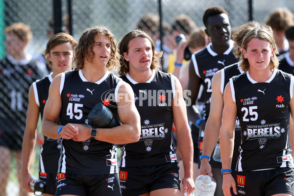 MELBOURNE, AUSTRALIA - MARCH 12: Brody Pope of the GWV Rebels arrives with team mates during the NAB League Boys Testing Day at Maribyrnong College on March 12, 2022 in Melbourne, Australia. (Photo by Kelly Defina/AFL Photos )