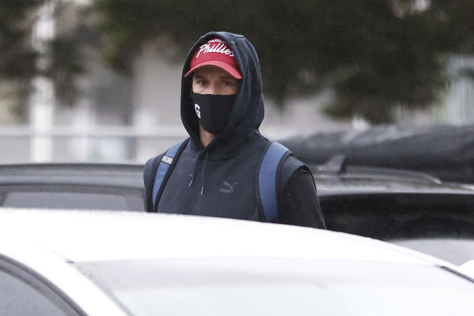 GEELONG, AUSTRALIA - JUNE 08: Josh Jenkins of the Cats arrives ahead of a closed training session at Kardinia Park on June 08, 2021 in Geelong, Australia. (Photo by Daniel Pockett/Getty Images via AFL Photos)