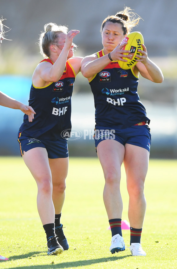 ADELAIDE, AUSTRALIA - NOVEMBER 03: Lisa Whiteley of the Crows competes with Dayna Cox of the Crows during an Adelaide Crows AFLW training session at West Lakes on November 03, 2021 in Adelaide, Australia. (Photo by Mark Brake/AFL Photos)