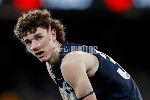 MELBOURNE, AUSTRALIA - SEPTEMBER 22: Hudson Okeeffe of Victoria Metro looks on during the 2022 U18 Championships match between Vic Metro and Vic Country at Marvel Stadium on September 22, 2022 in Melbourne, Australia. (Photo by Dylan Burns/AFL Photos)