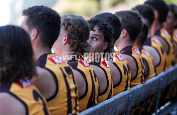 MELBOURNE, AUSTRALIA - FEBRUARY 09: Jack O’Sullivan of the Hawks looks on during the Hawthorn Hawks 2023 Official Team Photo Day at Bunjil Bagora, Waverley Park on February 09, 2023 in Melbourne, Australia. (Photo by Michael Willson/AFL Photos)