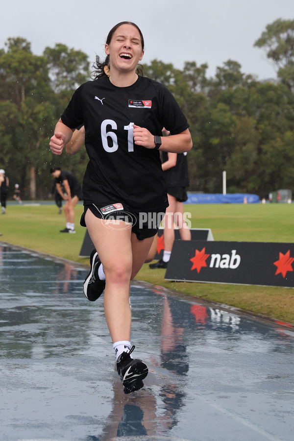 PERTH, AUSTRALIA - JULY 18: Chloe Reilly runs the 2km Time Trial during the Western Australia AFLW Draft Combine at the WA Athletics Stadium on July 18, 2021 in Perth, Australia. (Photo by Paul Kane/AFL Photos )