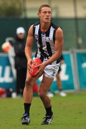 Benjamin Monkhorst of the Collingwood Magpies in action during the 2015 VFL Round 2 match between the Essendon Bombers and Collingwood Magpies at Windy Hill, Melbourne on April 26, 2015. (Photo: Graham Denholm/AFL Media)