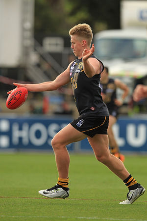 MELBOURNE, AUSTRALIA - MAY 30: Reece Mckenzie of the Tigers in action during the round seven VFL match between the Richmond Tigers and the Essendon Bombers at Punt Road Oval on May 30, 2015 in Melbourne, Australia. (Photo by Graham Denholm/AFL Media/Getty Images)