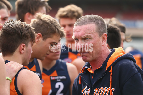 MELBOURNE, AUSTRALIA - SEPTEMBER 06: Andrew Johnston of Calder speaks to players during the TAC Cup Elimination Final match between the Eastern Ranges and the Calder Cannons at Ikon Park on September 6, 2015 in Melbourne, Australia. (Photo by Robert Prezioso/AFL Media/Getty Images)