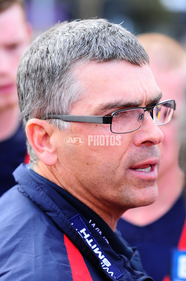 Coburg coach Peter German at quarter time during the VFL Round 14 match between Coburg and Williamstown at Piranha Park, Melbourne on July 13, 2014. (Photo: Theo Karanikos/AFL Media)