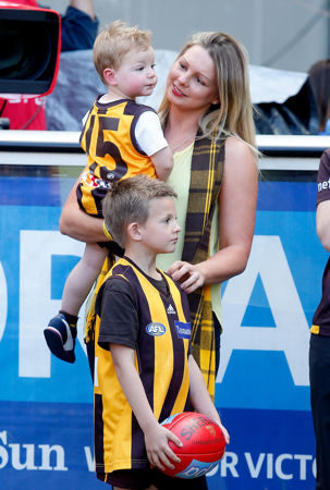 Lauren Hodge wife of Luke Hodge and his kids are seen during the 2014 Toyota AFL Grand Final match between the Sydney Swans and the Hawthorn Hawks at the MCG, Melbourne on September 27, 2014. (Photo: Justine Walker/AFL Media)