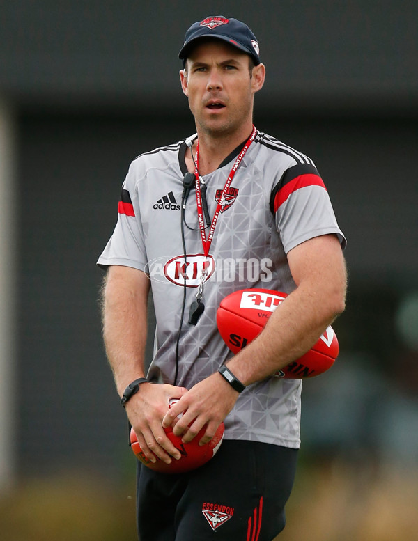 MELBOURNE, AUSTRALIA - JANUARY 14: Matthew Egan, Assistant Coach of the Bombers in action during the Essendon Bombers training session at the True Value Solar Centre, Melbourne on January 14, 2016. (Photo: Michael Willson/AFL Media)
