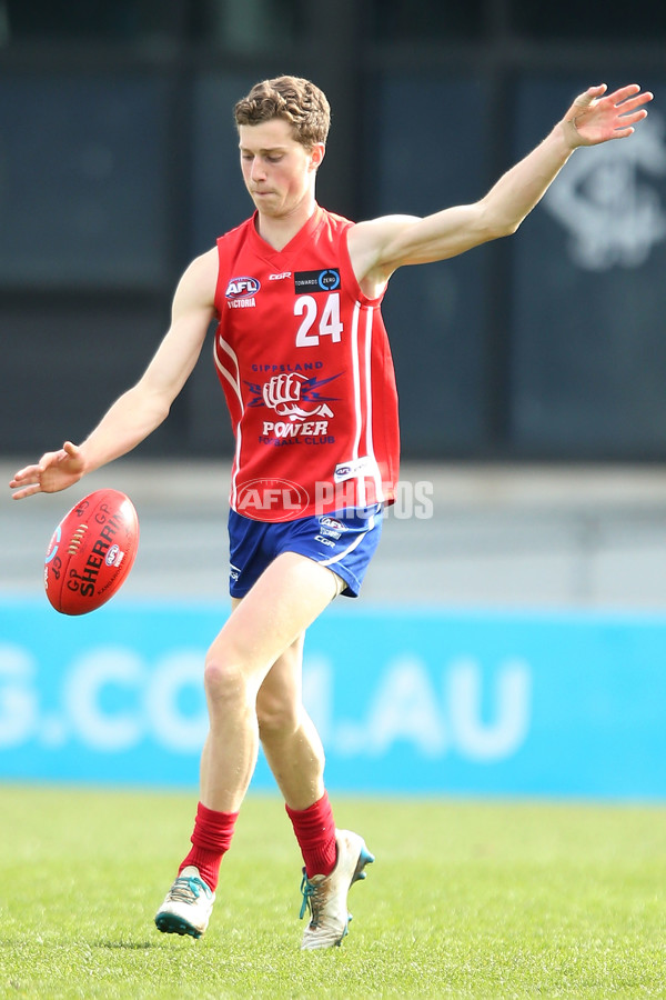 MELBOURNE, AUSTRALIA - AUGUST 27: Sean Masterson of the Power kicks the ball during the round 18 TAC Cup match between Gippsland Power and Bendigo Pioneers at Ikon Park on August 27, 2016 in Melbourne, Australia. (Photo by Jack Thomas/AFL Media/Getty Images)
