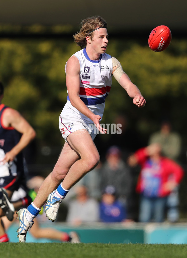 MELBOURNE, AUSTRALIA - SEPTEMBER 3: Mitchell Hannan of Footscray runs with the ball during the VFL 1st Qualifying Final match between Casey Scorpions and Footscray at Casey Fields on September 3, 2016 in Melbourne, Australia. (Photo by Scott Barbour/AFL Media)