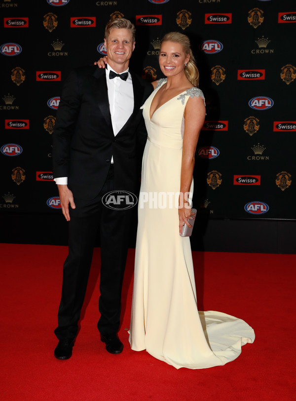 MELBOURNE, AUSTRALIA - SEPTEMBER 25: Nick Riewoldt of the Saints and wife Catherine Riewoldt arrive during the Swisse Brownlow Red Carpet Arrivals at the Crown Palladium on September 25, 2017 in Melbourne, Australia. (Photo by Adam Trafford/AFL Media)