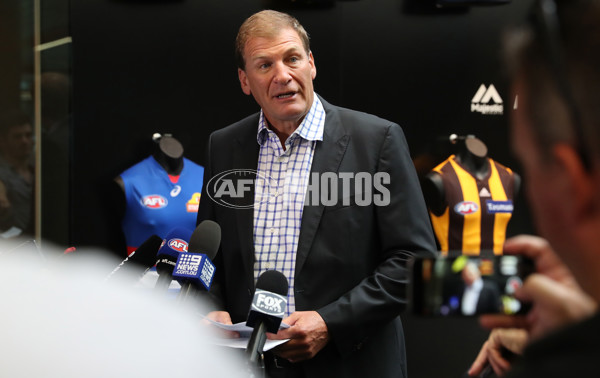 MELBOURNE, AUSTRALIA - FEBRUARY 5: Michael Christian, Match Review Panel Officer of the AFL addresses the media during an AFL press conference at AFL House on February 5, 2018 in Melbourne, Australia. (Photo by Michael Willson/AFL Media)