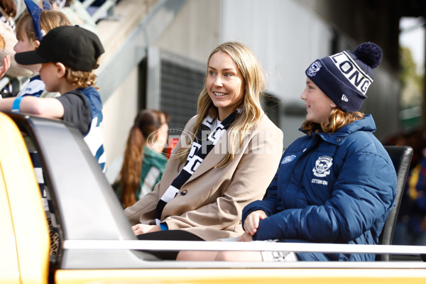 GEELONG, AUSTRALIA - MAY 06: Former Cats AFLW player Maddy McMahon is seen in the motorcade during the 2023 AFL Round 08 match between the Geelong Cats and the Adelaide Crows at GMHBA Stadium on May 6, 2023 in Geelong, Australia. (Photo by Dylan Burns/AFL Photos)