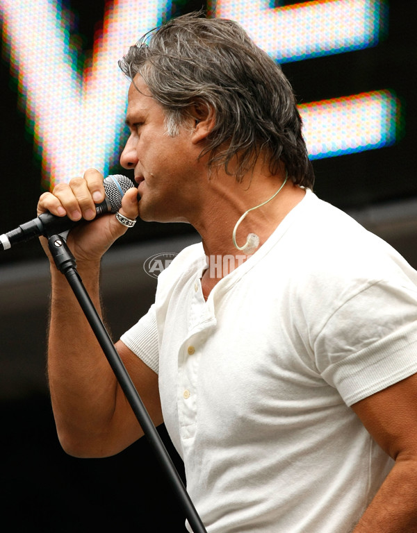 Jon Stevens performs before the AFL Round 05 ANZAC Day match between the Collingwood Magpies and the Essendon Bombers at the MCG, Melbourne. (Photo: Michael Willson/AFL Photos)