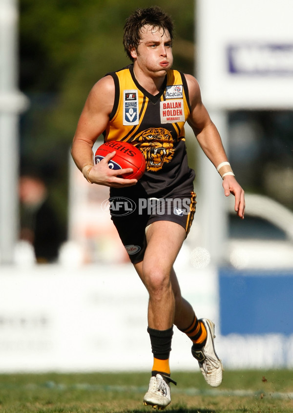 Rhyce Prismall of Werribee in action during the VFL Round 19 match between the Werribee Tigers and the Bendigo Bombers at Chirnside Park, Melbourne.