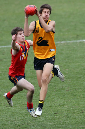 Laurence Grescos of WA takes a mark during the AFL Under 16 championships match between South Australia and Western Australia at Blacktown Olympic Park, Blacktown.