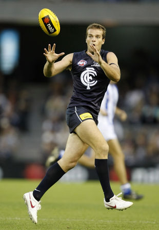 Greg Bentley of Carlton in action during the NAB Cup match between the Carlton Blues and the North Melbourne Kangaroos at the Telstra Dome.