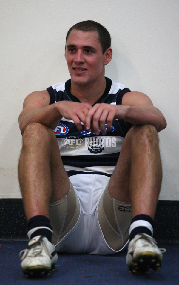 Kane Tenace of Geelong in the rooms after the NAB Cup Match between the Geelong Cats and the Carlton Blues at the Docklands Stadium.