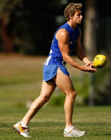 Matt Riggio in action during a North Melbourne Kangaroos training session at Arden Street, Melbourne.