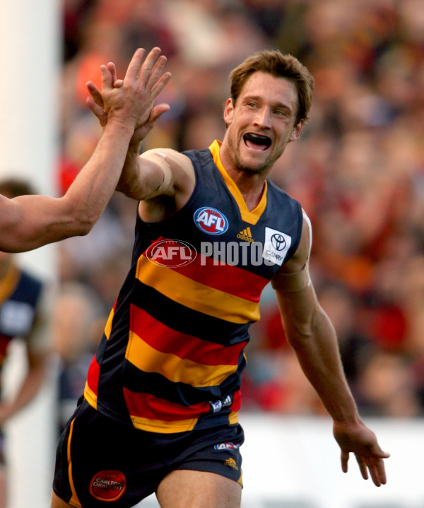 Luke Jericho of the Crows celebrates a goal during the AFL Round 08 match between the Adelaide Crows and the Melbourne Demons at AAMI Stadium.