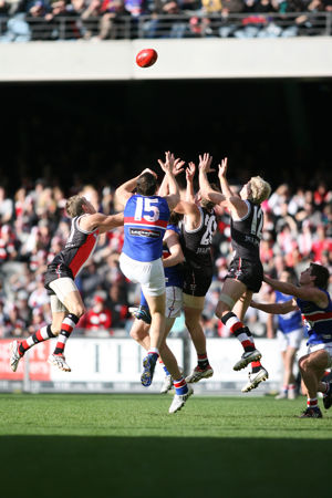 during the AFL Round 11 match between the St Kilda Saints and the Western Bulldogs at the Telstra Dome.