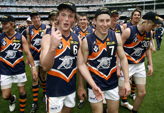 Calder Cannons players celebrate after winning the 2007 TAC Cup Grand Final between the Calder Cannons and the Murray Bushrangers at the MCG.