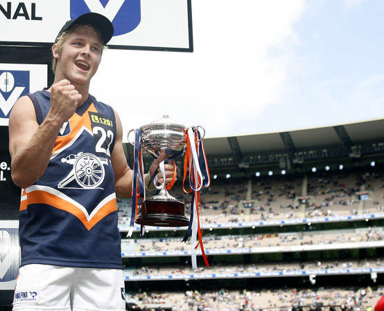 Mitchell Farmer of the Calder Cannons with the cup after winning the 2007 TAC Cup Grand Final between the Calder Cannons and the Murray Bushrangers at the MCG.