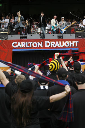 INXS perform in the pre-match entertainment during the 2010 Toyota AFL Grand Final between the Collingwood Magpies and the St Kilda Saints at the MCG, Melbourne.