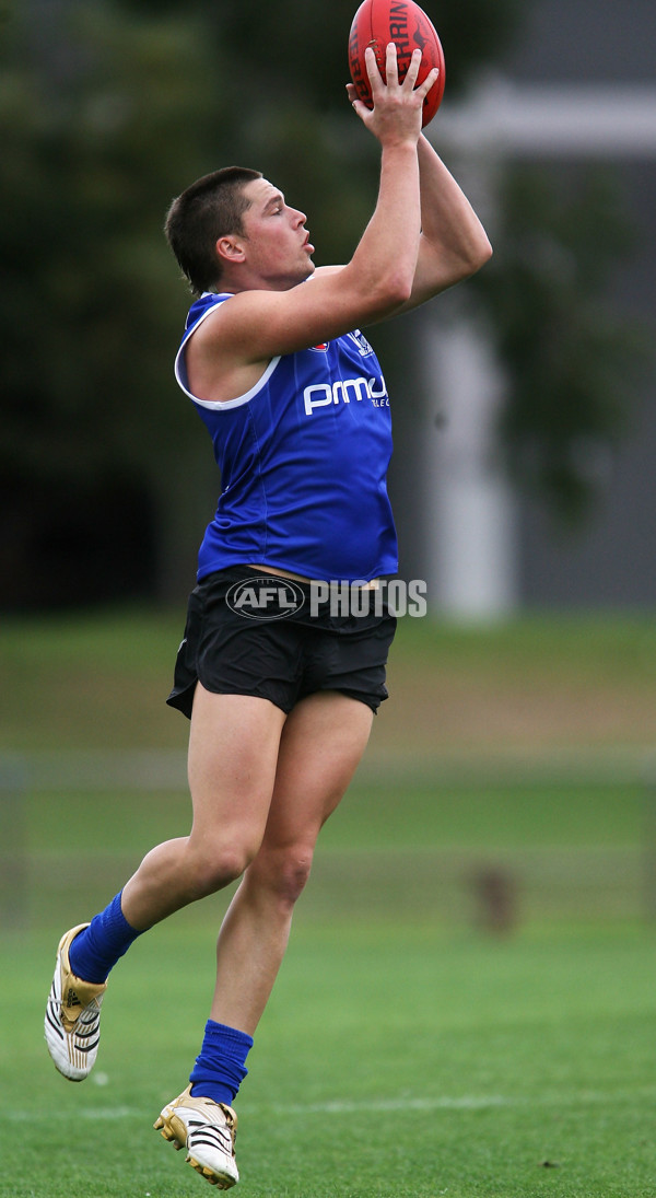 Callum Urch takes a mark during a Kangaroos training session at Arden Street Oval in Melbourne.