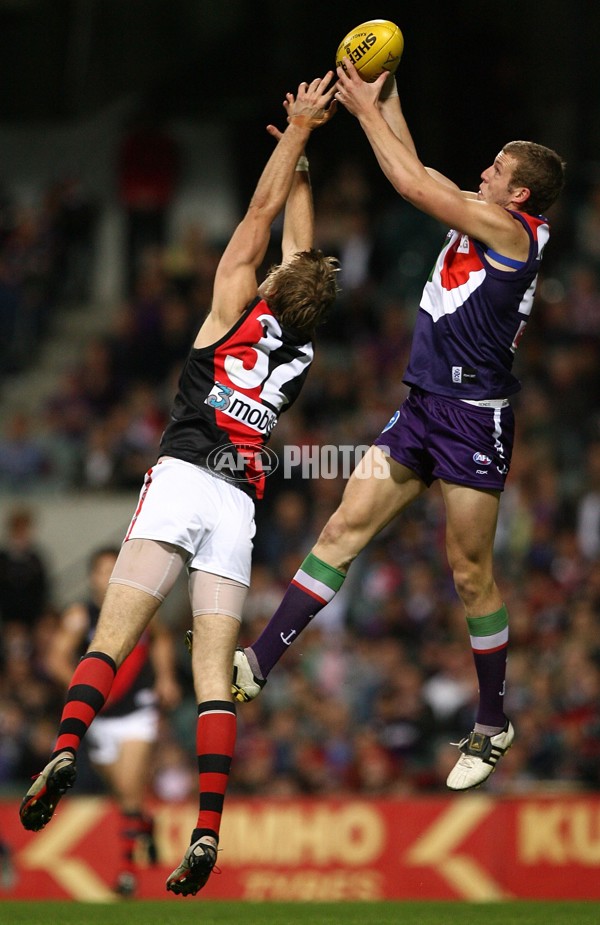 Ryan Murphy of the Dockers takes a mark over Andrew Lee of the Bombers during the round 14 AFL match between the Fremantle Dockers and the Essendon Bombers at Subiaco Oval on July 7, 2006 in Perth, Australia.