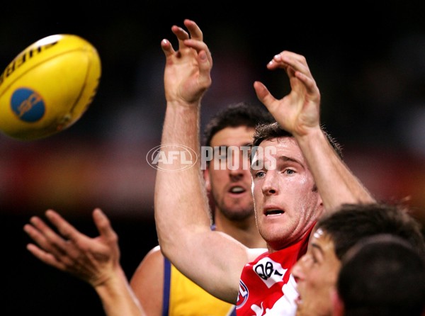 Stephen Doyle of the Swans contests the ruck during the AFL First Qualifying Final between the West Coast Eagles and the Sydney Swans at Subiaco Oval September 09, 2006 in Perth, Australia.