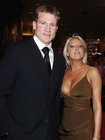 Nathan Buckley of Collingwood arrives with his wife Tanya arrives for the Brownlow Medal Dinner at the Crown Casino on September 22, 2003 in Melbourne, Australia.