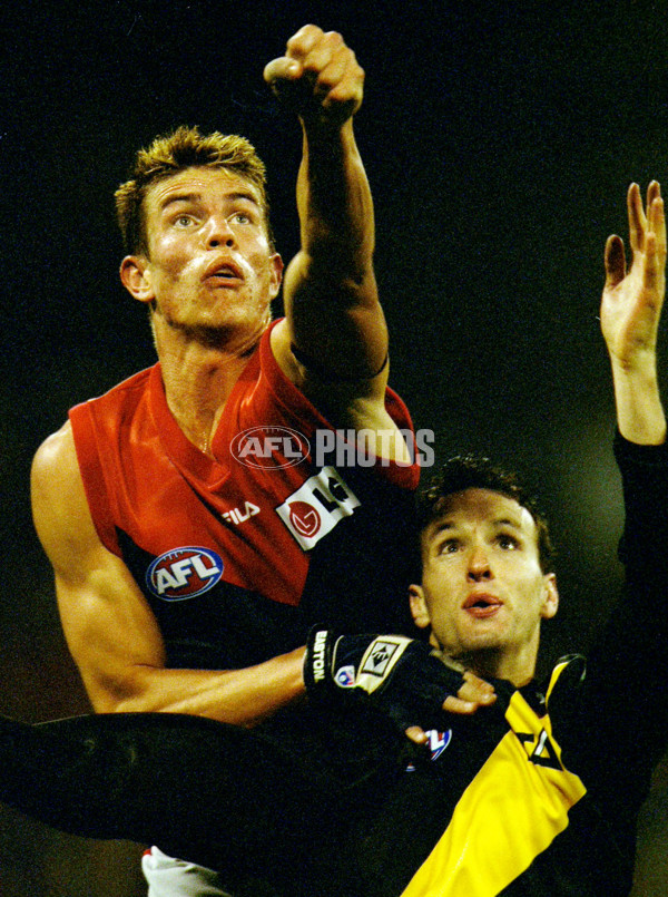 Troy Simmonds for Melbourne looks to punch the ball from David Bourke for Richmond during the round 16 AFL match between the Richmond Tigers and the Melbourne Demons at the Melbourne Cricket Ground on July 20, 2001.