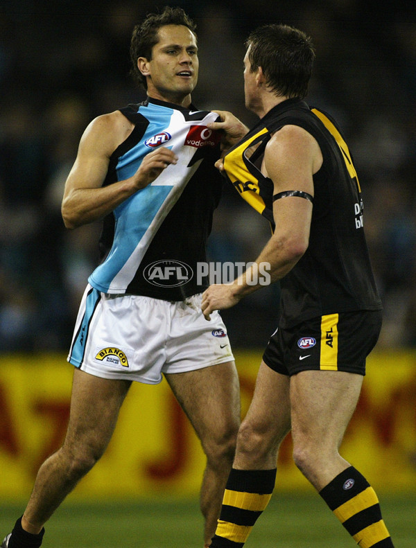 Gavin Wanganeen of the Power clashes with Matthew Rogers of the Tigers during the round 21 AFL match between the Richmond Tigers and the Port Adelaide Power at the Telstra Dome August 24, 2003 in Melbourne, Australia.