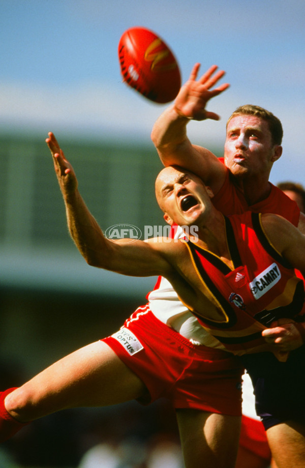 Nigel Smart of the Crows and Ryan O'Connor of the Swans competes for the ball during 2000 AFL practice match between the Sydney Swans and the Adelaide Crows.