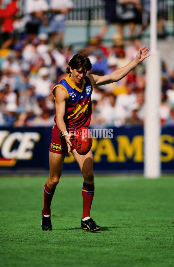 Scott Bamford of the Lions lines up a kick during the 1998 round 3 AFL match between the Brisbane Lions and the Melbourne Demons.