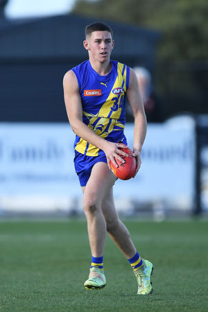 MELBOURNE, AUSTRALIA - JULY 29: Jack Kovacevic of the Jets in action during the 2023 Coates Talent League Boys match between the Western Jets and the Sandringham Dragons at DSV Stadium on July 29, 2023 in Melbourne, Australia. (Photo by Felicity Elliott/AFL Photos)