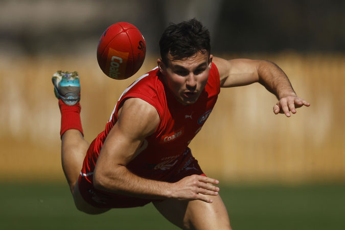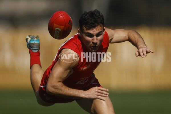 MELBOURNE, AUSTRALIA - SEPTEMBER 03: Sebastiano Amoroso of the Power contests the ball during the Coates Talent League Boys Wildcard Round match between Gippsland Power and Dandenong Stingrays at La Trobe University Sports Fields on September 03, 2023 in Melbourne, Australia. (Photo by Daniel Pockett/AFL Photos)