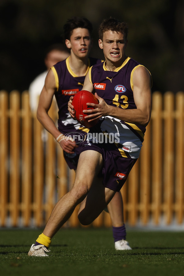 MELBOURNE, AUSTRALIA - SEPTEMBER 03: Harrison Eales of the Chargers runs with the ball during the Coates Talent League Boys Wildcard Round match between Northern Knights and Oakleigh Chargers at La Trobe University Sports Fields on September 03, 2023 in Melbourne, Australia. (Photo by Daniel Pockett/AFL Photos)