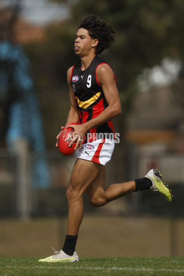 MELBOURNE, AUSTRALIA - SEPTEMBER 19: Basil Hart of Flying Boomerangs runs with the ball during Game 1 of the 2023 AFL Flying Boomerangs v World Team Diversity Series exhibition games at Trevor Barker Oval on September 19, 2023 in Melbourne, Australia. (Photo by Daniel Pockett/AFL Photos/Getty Images via AFL Photos)