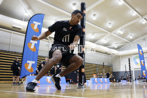 MELBOURNE, AUSTRALIA - OCTOBER 06: Adrian Cole in action during the 2024 AFL National Draft Combine at Melbourne Sports and Aquatic Centre on October 06, 2024 in Melbourne, Australia. (Photo by Martin Keep/AFL Photos)