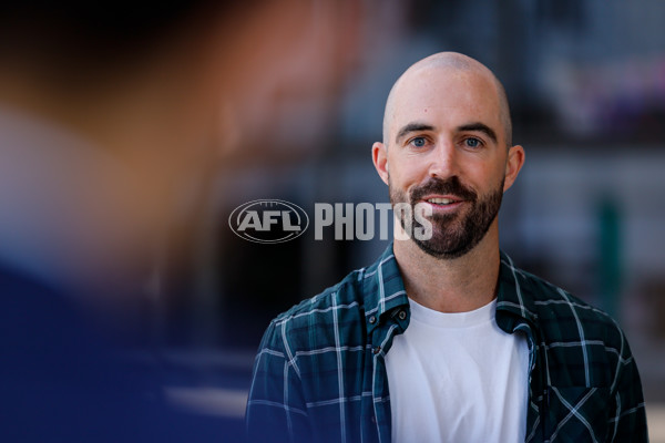 MELBOURNE, AUSTRALIA - NOVEMBER 21: Steele Sidebottom of the Magpies speaks to the media during the official launch of the Nth Pole event at Marvel Stadium on November 21, 2024 in Melbourne, Australia. (Photo by Dylan Burns/AFL Photos)
