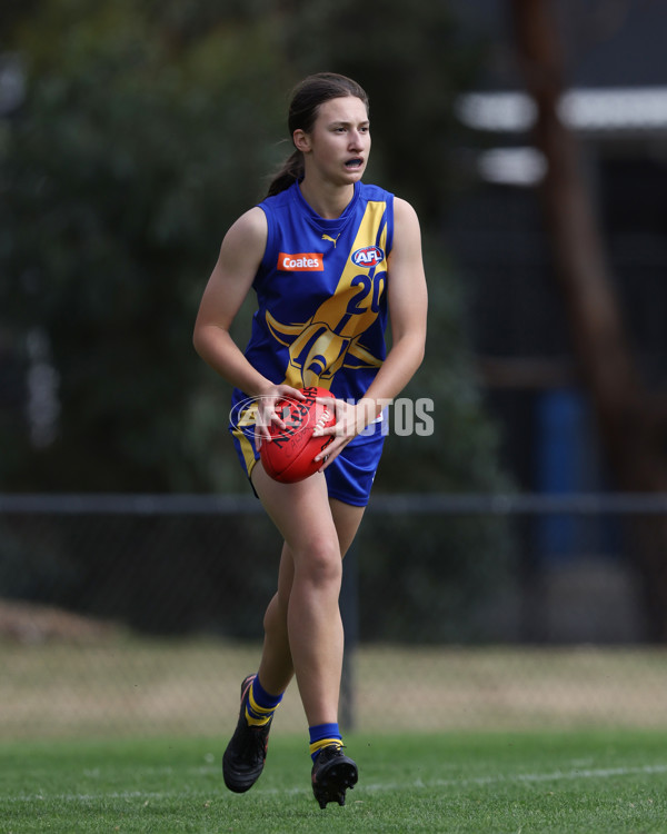 MELBOURNE, AUSTRALIA - APRIL 06: Makaylah Brne of the Jets in action during the 2025 Coates Talent League Girls Round 01 match between Calder Cannons and Western Jets at Highgate Recreation Reserve on April 06, 2025 in Melbourne, Australia. (Photo by Rob Lawson/AFL Photos)