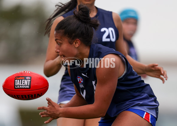 MELBOURNE, AUSTRALIA - APRIL 16: Khimaya Georgiou of Victoria Metro fires off a handpass during the 2025 Victorian Diversity All Stars Girls match between Victoria Country and Victoria Metro at Shepley Oval on April 16, 2025 in Melbourne, Australia. (Photo by Craig Dooley/AFL Photos)