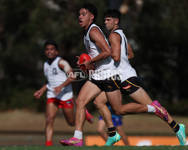 MELBOURNE, AUSTRALIA - APRIL 16: Archie Wyley of Victoria Country runs the ball during the 2025 Victorian Diversity All Stars Boys match between Victoria Country and Victoria Metro at Shepley Oval on April 16, 2025 in Melbourne, Australia. (Photo by Craig Dooley/AFL Photos)