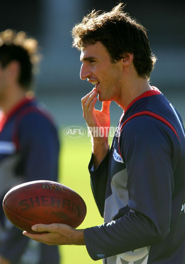 Chris Heffernan has a laugh during the Melbourne training session at Junction Oval June 28, 2004 in Melbourne, Australia.