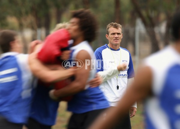 Kangaroos coach Dean Laidley over looks a skills training session at the Kangaroos AFL Community Camp at the AIS fields on February 27, 2006 in Canberra, Australia.