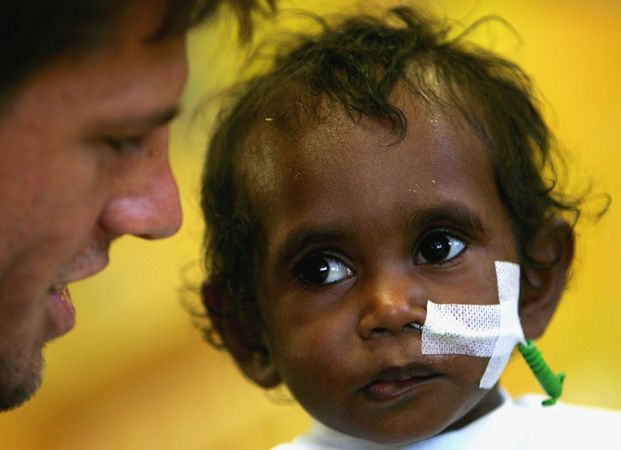 Brett Montgomery of the Bulldogs takes a break from swimming laps of the Parap pool during the Western Bulldogs AFL Community Camp February 23, 2006 in Darwin, Australia.